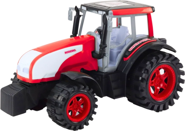 Denne røde landbrugstraktor efterligner trofast rigtige landbrugsmaskiner og motiverer børn til kreativ leg. Når den trækkes tilbage eller skubbes, kører den automatisk frem, så de nemt kan skabe deres egne historier fra gård og byggeplads. Takket være den robuste konstruktion tåler den hyppig brug både inde og ude.