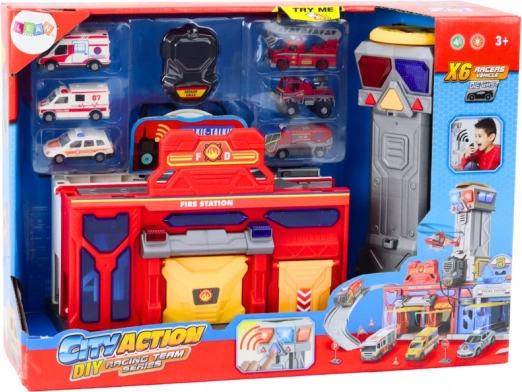 Dette multifunktionelle sæt forvandler børneværelset til et ægte redningscenter. Basen omfatter segmenter af brandstation og hospital, en tagtårn med landingsplads og tilbehør til at styre indsatser. Køretøjerne kan suse ned ad den dynamiske rampe, mens det indre rum fungerer som opbevaringsboks. Takket være håndtaget kan hele stationen let bæres som en kuffert.