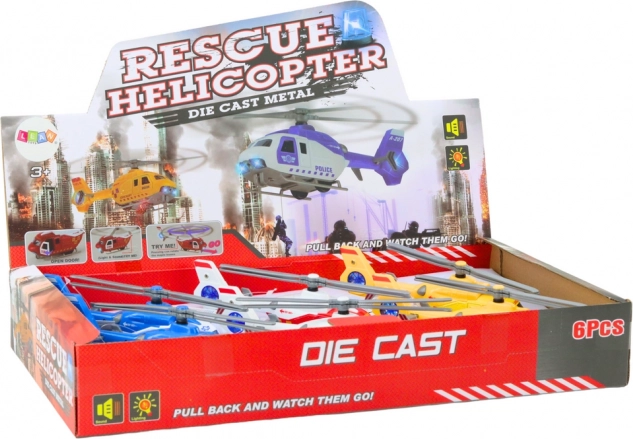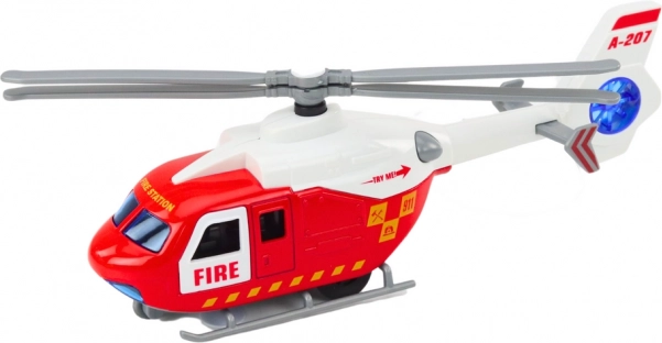 Denne detaljerede metalhelikopter vil begejstre alle små fans af beredskabet. Takket være lys- og lydeffekter efterligner den troværdigt aktioner fra politiet, brandvæsnet og redningstjenesten. Åbne døre gør det muligt at indsætte figurer og tilbehør og udvide legescenarierne.
