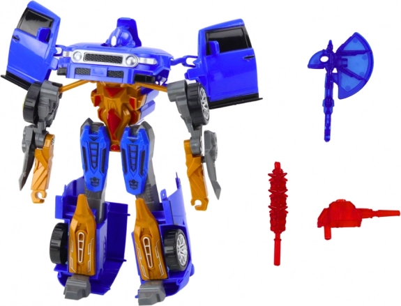 Den blå 2-i-1 robot giver to lege i én: en futuristisk kriger og en sportsvogn. Transformationen er intuitiv og hurtig, så børn nemt kan lege selvstændigt. Realistiske detaljer på både karrosseri og robot samt tre udskiftelige tilbehørsdele stimulerer fantasien og skabelsen af egne historier.
