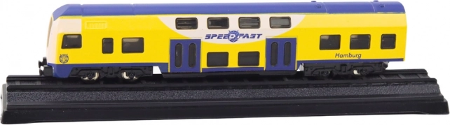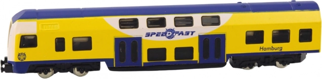 Oplev en præcist udført model af et højhastighedstog med påskrifterne “Hamburg” og “Speedfast”, som imponerer med korrekt skala og metalkrop. Realistiske proportioner i skala 1:48, rene linjer og fine detaljer som vinduer og døre fremhæver samlerværdien.