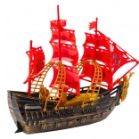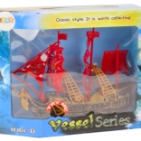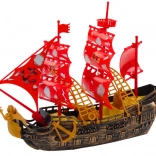 Skibet udmærker sig ved sine gyldenbrune sider, som giver det et elegant og autentisk udseende, værdigt for rigtige piratskibe fra svundne tider. Beriget med røde master, hvor piratsymboler vajer, fanger det opmærksomheden og fuldender atmosfæren af mystiske søeventyr. Takket være disse detaljer ligner legetøjet et rigtigt skib, klar til at erobre have og oceaner.