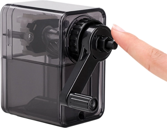 Stilfuld og funktionel håndsving-spidser, ideel til skole, kontor og hjemmearbejdsplads. Mekanismen med håndsving fremskynder spidsningen og sikrer en jævnt spidset stift uden anstrengelse – et par omgange, og blyanten er klar til brug.