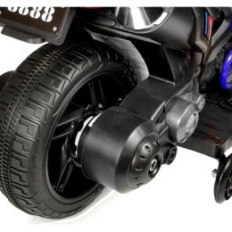 Den elektriske motorcykel GTM1188 udmærker sig ved et robust korpus, der forbinder alle dele solidt og virker mere massiv end almindelige modeller. Integrerede fodhvilere øger stabiliteten og trygheden ved både påstigning og kørsel, mens de laterale hjælpehjul er diskret skjult for ikke at forstyrre det realistiske udseende.
