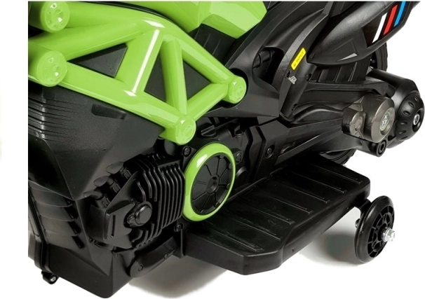 Modellen GTM1188 skiller sig ud med et robust karrosseri uden unødige åbninger, hvilket giver et solidt og sikkert indtryk trods de kompakte mål. Integrerede fodstøtter øger stabilitetsfølelsen, mens de skjulte støttehjul ikke forstyrrer designet og diskret hjælper begyndere med balancen. Motorcyklen er udstyret med bakspejle, dobbelt udstødning og holder til børnenummerplade.