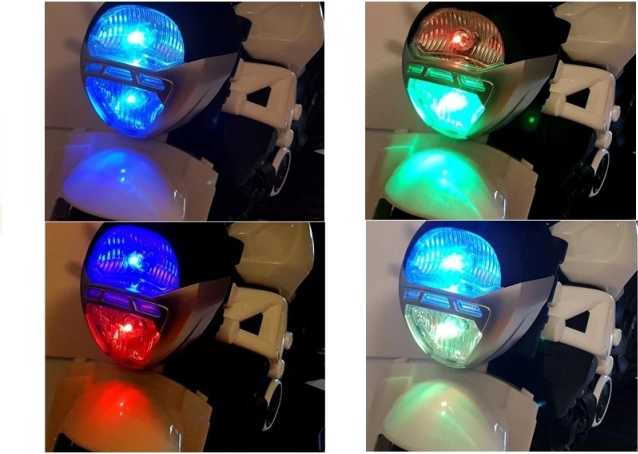 Den forreste LED-lygte kan lyse i flere farver, så hver køretur bliver endnu sjovere og mere synlig for børnene.