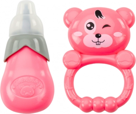 Sættet inkluderer en sød rangle, der støtter udviklingen af motorik og sanseopfattelse under legen.