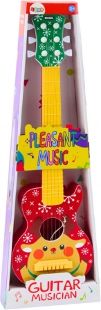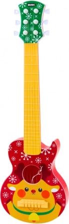 Den søde børneguitar med rensdyrmotiv vil glæde små musikere fra 3 år. Den tilbyder metalsstrenge for en mere realistisk lyd, justering af strengespænding til stemning og et farverigt design, der fanger opmærksomheden. Inkluderer et plekter formet som et hjerte på en snor for nem spilning. Certificeret CE og i overensstemmelse med EN71 for sikker leg.
