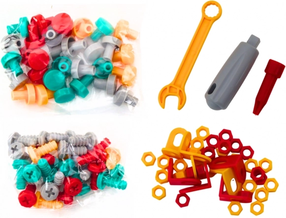 Der er også inkluderet et nøgle og skruer, der støtter fantasi og finmotorik. Bordet muliggør forskellige legemåder, fra byggeri til konkurrerende fiskeri. Det hjælper med at udvikle motoriske færdigheder, logisk tænkning og kreativitet.
