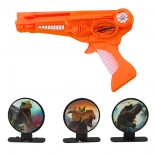 Dette unikke spil inkluderer en orange pistol, som du kan bruge til at skyde tre farverige fly afsted og sigte mod tre målskiver med dinosaurtema. Pistolen er let og ergonomisk, hvilket gør den nem at holde for små hænder. Børn kan nemt læsse et fly, trykke på aftrækkeren og se det glide gennem luften.
