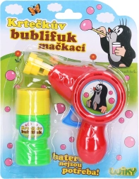 En sjov klem-boblemaskine med motiv af Mulvarpen glæder både børn og voksne. Takket være den praktiske klemme­mekanisme laver du masser af farverige bobler nemt og hurtigt. Den kompakte 55 ml pakning er ideel til rejser og legepladsen. Fås i 2 farvevarianter – rød og grøn.