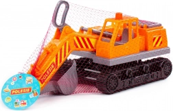 Bæltegravemaskinen fra Monolit-serien er beregnet til leg både indendørs og udendørs. Legetøjet i kategorien specialbyggemaskiner er udstyret med en bevægelig arm, hvis skovl styres med et gråt håndtag. Overbygningen med kabine kan dreje 360 grader. Bælterne er lavet af gummi af høj kvalitet og stor styrke, hvilket sikrer kørsel på forskellige overflader. Gitteret over motoren kan åbnes.