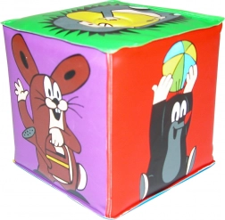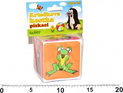 Denne plastiske pivelydende terning med motiver af KRTEČEK er en ideel første legeting til babyer fra fødslen. Takket være det bløde, sikre materiale er den nem at gribe med små hænder, og de forskellige farver og pivelyden udvikler syn, hørelse og finmotorik.
