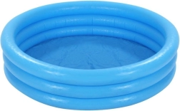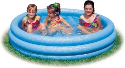 Den blå oppustelige pool til børn fra mærket Intex er det perfekte valg til sommerleg i haven. Med let installation og lav vægt kan poolen hurtigt være klar til brug. Det kræver blot at placere den på en stabil overflade, puste den op og fylde med vand. De stærke tre-rings vægge giver tilstrækkelig stabilitet selv for de mindste brugere.