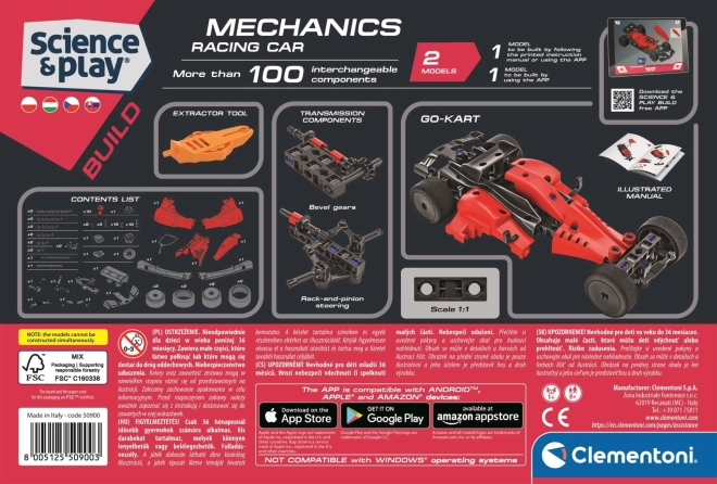 Byg din egen Formel 1 eller gokart fra serien CLEMENTONI Science & Play, og udforsk verdenen af mekanik og ingeniørkunst. Sættet med over 100 dele, funktionsdygtigt rat, klistermærker og en illustreret vejledning giver læring gennem leg i STEM-ånden og styrker fingersnilde, teknisk tænkning og koncentration.