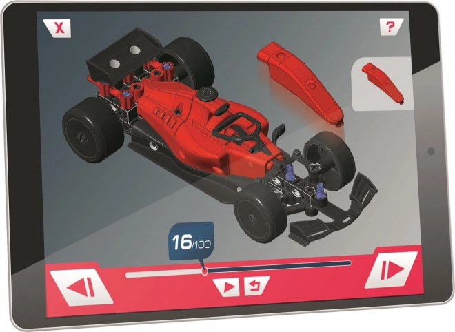 Dette naturvidenskabelige og kreative byggesæt lader børn fra 8 år samle en realistisk model af en Formelbil og en gokart (ikke samtidigt). Delene er præcist designet til stabile forbindelser og gentagne ombygninger, så børn kan eksperimentere med mekanik og konstruktion og udvikle logik og fantasi.