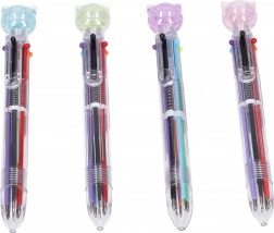 Sød og praktisk multifarvet kuglepen med kattemotiv, der tilbyder 6 populære farver i én pen. Ideel til skrivning, fremhævning og kreative noter – skift blot farve og fortsæt uden at skifte pen.