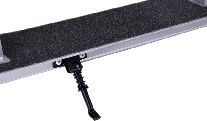 Styrhøjden kan nemt justeres i tre trin, skumgrebene er behagelige at holde om, og den skridsikre trædeflade holder foden stabil selv på længere ture. Fodbremsen på baghjulet gør det muligt at bremse hurtigt og jævnt, og den klapbare støttefod gør det nemt at stille scooteren fra sig hvor som helst.