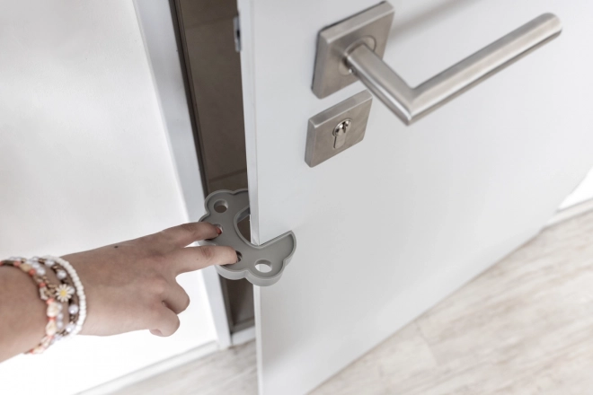 Beskyt dine børn mod uventede uheld med en innovativ spærring i form af en simpel gummiring. Denne praktiske hjælper sikrer, at døren aldrig smækker i pludseligt, hvilket forhindrer klemte små fingre eller at døren låser sig til børneværelset. Installationen er nem — sæt blot ringen på dørens kant.