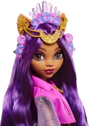 MONSTER HIGH Clawdeen Wolf – Monster Fest-dukke bringer sjov, stil og en portion uhyggelig sødme til enhver børnesamling. Clawdeen stråler i en top og nederdel med konstellationsmotiv, suppleret med et “krystal”-hårbånd, guldbælte og bløde, pelsede detaljer. Takket være bevægelige led klarer hun let både dansemoves og festivalpositurer foran kameraet.