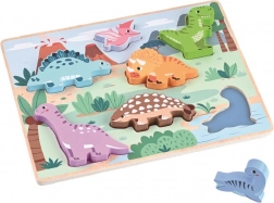 Dette træ 3D puslespil med dinosaurer er det ideelle første puslespil til de mindste. Brikkerne i form af populære dinosaurer er lette at gribe og sætte i de rigtige udskæringer, hvilket udvikler hånd–øje-koordination og tålmodighed. Glade farver og venlige former indbyder til gentagen leg.