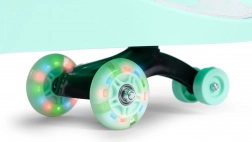 Gummihjulene sikrer en glidende og stille kørsel uden at ridse gulvet, mens LED-dioder i hjulene lyser under kørsel og øger synligheden i skumringen. Det ergonomisk formede sæde og skridsikre flader til fødderne øger både komfort og sikkerhed. Der medfølger styre-/trækrem, og du kan køre både fremad og baglæns.