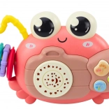 Den interaktive lyserøde krabbe er den ideelle ledsager til daglige lege, der ikke kun giver sjov, men også mulighed for at udvikle motoriske færdigheder og lydopfattelse hos børn. Krabben er udstyret med en projektor, der simulerer nattehimlen og skaber en farverig atmosfære fuld af stjerner. Indbyggede rangler genererer behagelige lyde, der stimulerer børns hørelse. Materialer af høj kvalitet, ikke-giftige sikrer sikkerhed og den ergonomiske form gør det nemt at holde for små børnehænder.