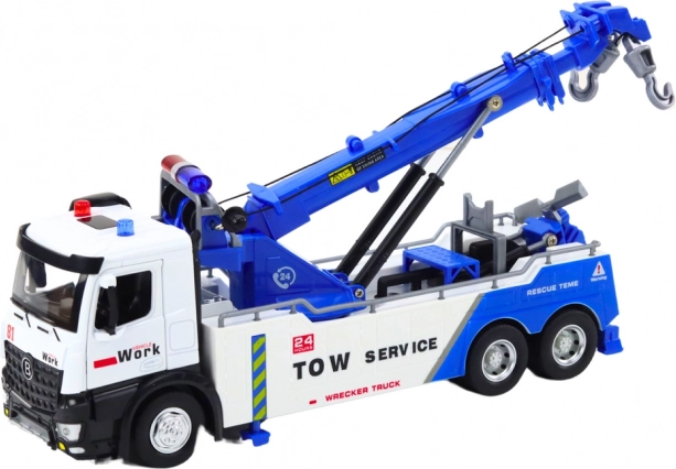 Metal bjærgningskran med to kroge i hvid-blå farve med lys og lyde