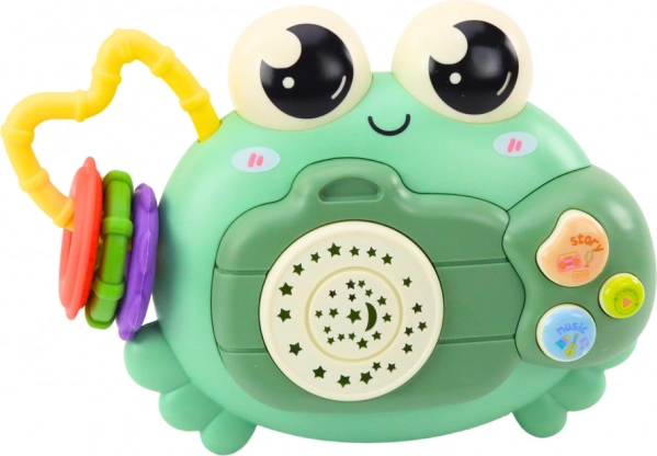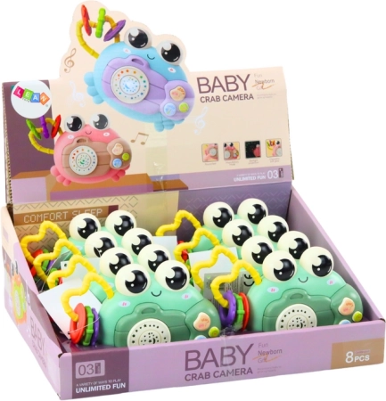 Denne grønne krabbe er udstyret med indbyggede rasler, der udsender behagelige lydeffekter for at stimulere barnets hørelse. Den er lavet af materialer af høj kvalitet og er sikker at bruge, hvilket gør den helt tryg for børn. Ideel til udvikling af motoriske færdigheder og auditiv perception.