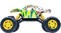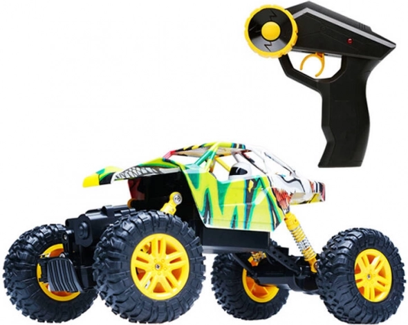 Køretøjet er udstyret med solide, uafhængige kofangere, som beskytter det mod skader under fald eller kollisioner. Takket være 2.4GHz forbindelsen gør fjernbetjeningen det muligt at styre køretøjet jævnt uden interferens og tillader drift af flere modeller samtidigt.