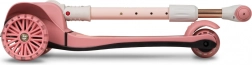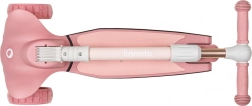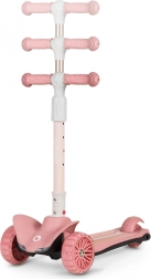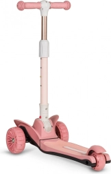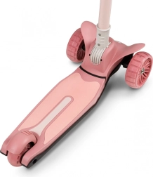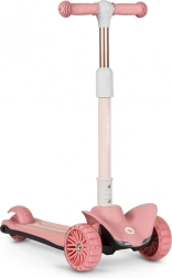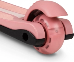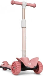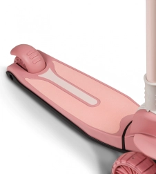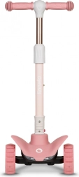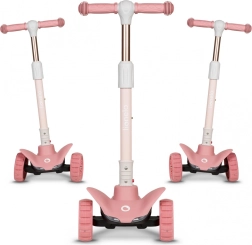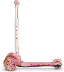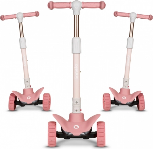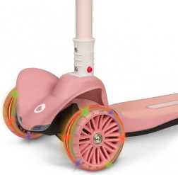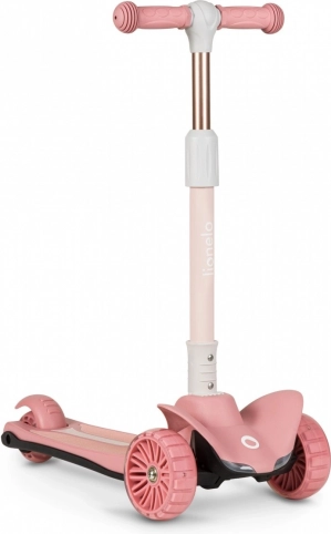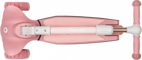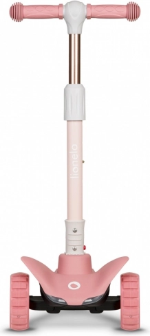LIONELO Timmy Pink Rose er et let og sikkert børneløbehjul designet til komfortable første ture. To store forhjul og ét baghjul sikrer fremragende stabilitet, mens lean-to-steer (styring ved at læne sig) understøtter udvikling af balance og motorik. LED-lys i hjulene aktiveres af bevægelse, og LED-baggrundsbelysning i decket øger synlighed og sjov.