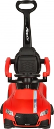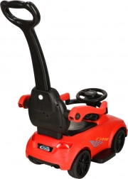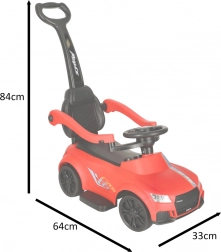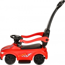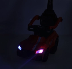 Klar, parat, start! Denne røde skubbebil til børn fra 12 måneder er ideel både til de første selvstændige ture og til gåture med forældre. Integrerede lys og lydeffekter (drevet af 3× AA) giver ekstra sjov, mens det komfortable sæde med ryglæn og sidebeskyttelse øger trygheden for de små kørere.