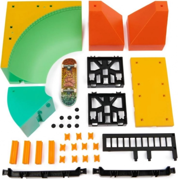 Med disse eksklusive Tech Deck fingerboards, designet af rigtige skatefirmaer, kan du bygge en skatepark efter dine egne ønsker. Sættet indeholder ramper, pyramider og rækværk, som giver forskellige muligheder for at udføre tricks. Forbind din park med andre kompatible ramper for endeløse legemuligheder.