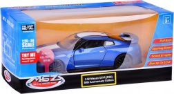 Oplev den ikoniske NISSAN GT‑R i elegant blå som en kvalitets die‑cast model 1:32. Metalkarosseri, gummihjul og plastchassis giver bilen et realistisk udseende og holdbarhed under leg. Takket være Friction power er det nok at trække bilen hen over en glat overflade og slippe.