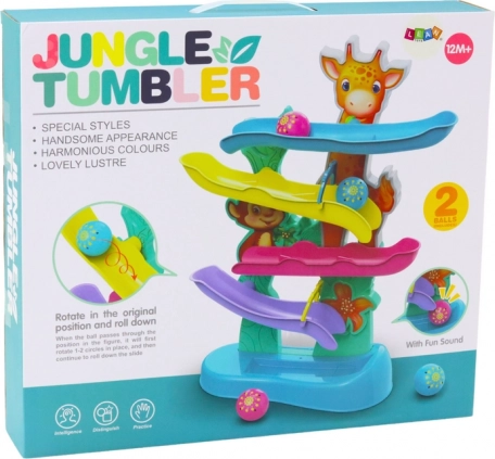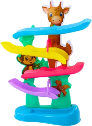 Opdag en sjov og sikker kuglebane formet som en giraf og en abe, der begejstrer børn med sin enkelhed og interaktive effekter. Når kuglerne slippes, kører de jævnt ned ad niveauerne, og ved ankomst til basen aktiveres glade melodier og dyrelyde. Legetøjet udvikler finmotorik, hånd-øje-koordination og farveopfattelse, og er produceret med fokus på sikkerhed og stabilitet.