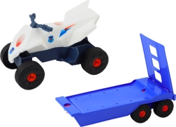 Den blå bil med trailer til transport af quaden giver et autentisk politilook og en jævn kørsel på forskellige underlag.