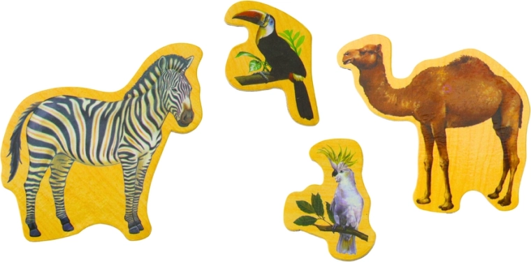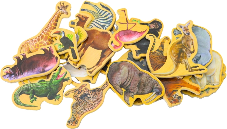 Dette sæt med 20 træmagneter bringer børnenes farverige dyreverden direkte hjem. Hver del har et realistisk tryk, der troværdigt afspejler de enkelte arters kendetegn og støtter naturlig læring gennem leg. Magneterne hæfter nemt på køleskab, magnettavle eller andre metaloverflader.