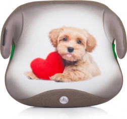 Installationen er hurtig og intuitiv – selepuden anvendes i kørselsretningen og fastgøres med bilens sikkerhedssele. Den giver barnet komfortabel siddestilling takket være det bløde betræk og armlæn; betrækket kan nemt tages af og vaskes.