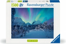 Puslespillets design viser en vidunderlig udsigt over nordlyset over det snedækkede landskab, hvilket bringer naturens skønhed ind i dine hænder. Perfekt til både sjov og dekoration efter samling.