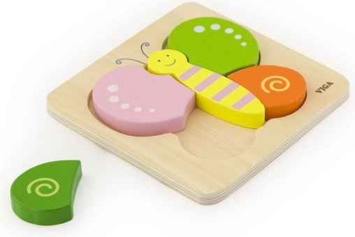 Vi præsenterer dig for det træpuslespil i form af en sommerfugl fra mærket Viga. Dette puslespil er ideelt både til hjemmebrug og i børnehaver.