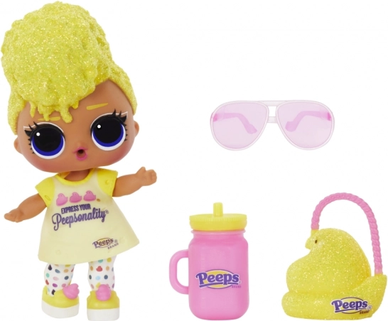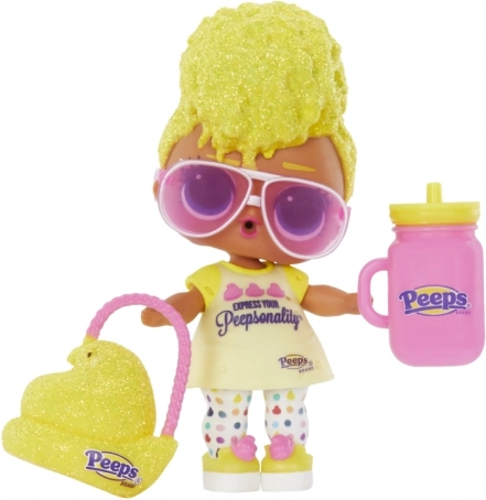 Glitrende detaljer, rosa og gule nuancer samt tematiske accessories forbinder de ikoniske PEEPS-slik med L.O.L. Surprise-dukkernes unikke look.