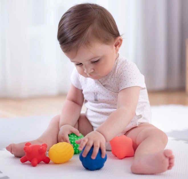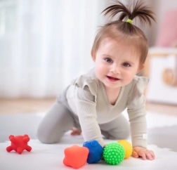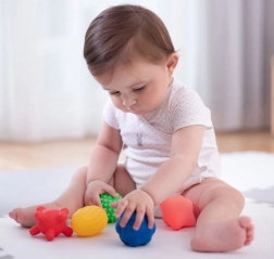 Hver bold har en unik overflade, der stimulerer berøringssansen og motiverer børn til at udforske, klemme og gribe.