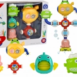 Gør bade tiden sjovere for børn med et interaktivt badelegetøj – en robot med sugekopper. Hæld vand i robotens hoved og se, hvordan skovlhjulene begynder at dreje, fontænerne starter, og strømmen ændrer retning takket være tre reguleringsventiler. Legetøjet udvikler finmotorik, logisk tænkning og styrker sansemæssig perception. Nem montering på fliser eller badekar takket være stærke sugekopper.