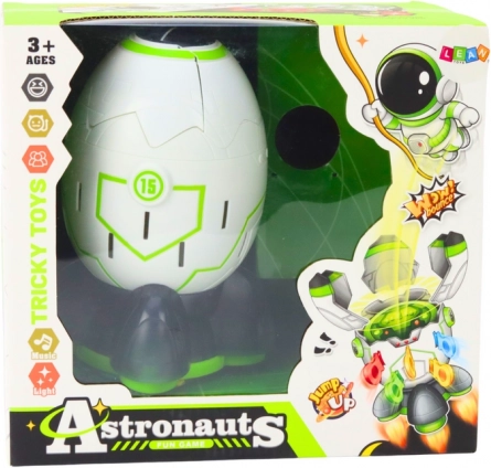 Placer raketten på basen, sæt astronauten i, og skiftes til at sætte pinde i hullerne. Simpelt princip, men stor spænding – den, der sætter pinden i “det” hul, udløser overraskelsesøjeblikket, og astronauten springer ud! Spillet er intuitivt, fængende og garanterer masser af grin for både børn og voksne.