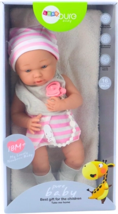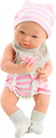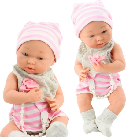 Med Stofte Spædbarn i Hvidt-Rosa Tøj møder børn en magisk verden af fantasi og omsorg. Det har realistiske ansigtstræk, som virker som en rigtig baby, og tilføjer autenticitet og dybde til børns oplevelser.