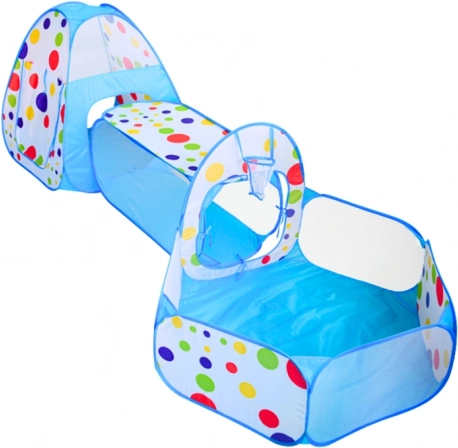 Børnelegeplads 3 i 1 - Igloo telt med tunnel og tør pool med kurv er en fantastisk løsning, der giver småbørn timer af uendelig sjov og glæde. Dette sæt består af tre hovedkomponenter: igloo telt, tunnel og tør pool kammer med kurv til bolde, som skaber en alsidig legeplads, der engagerer og udvikler børns fantasi.