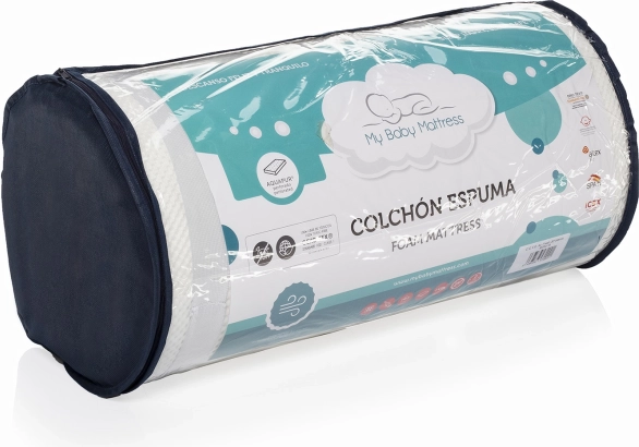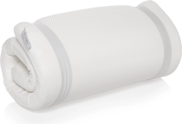 Praktisk rejsevenlig rullemadras til spædbørn og småbørn i størrelsen 120 × 60 cm i hvid. Tilbyder nem rejsekomfort, aftageligt og vaskbart betræk samt en behagelig kerne af Aquapur-skum for bedre tilpasning og åndbarhed takket være Airfresh 3D- og Thermo Fiber-strukturer.