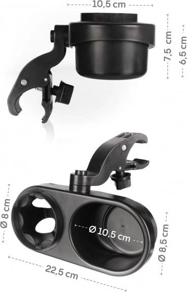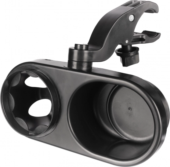 Ikke mere at rode efter flasker og kiks i barnevognens kurv. Denne universelle 2-i-1 holder tilbyder to rum – til flaske/krus og til små snacks eller nøgler. Robust plastkonstruktion og en stærk klemme sikrer fast montering uden at vakle, selv på ujævnt underlag.
