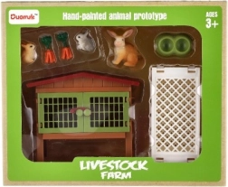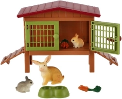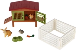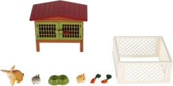 Sættet inkluderer kaniner, fodertrug og hegn, som giver realistiske legeoplevelser.