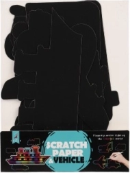 Ridse-billeder af transportmidler hjælper børn med at udvikle deres kreativitet og finmotorik. Afslør smukt farverige motiver skjult under den sorte overflade og skab unikke kunstværker.